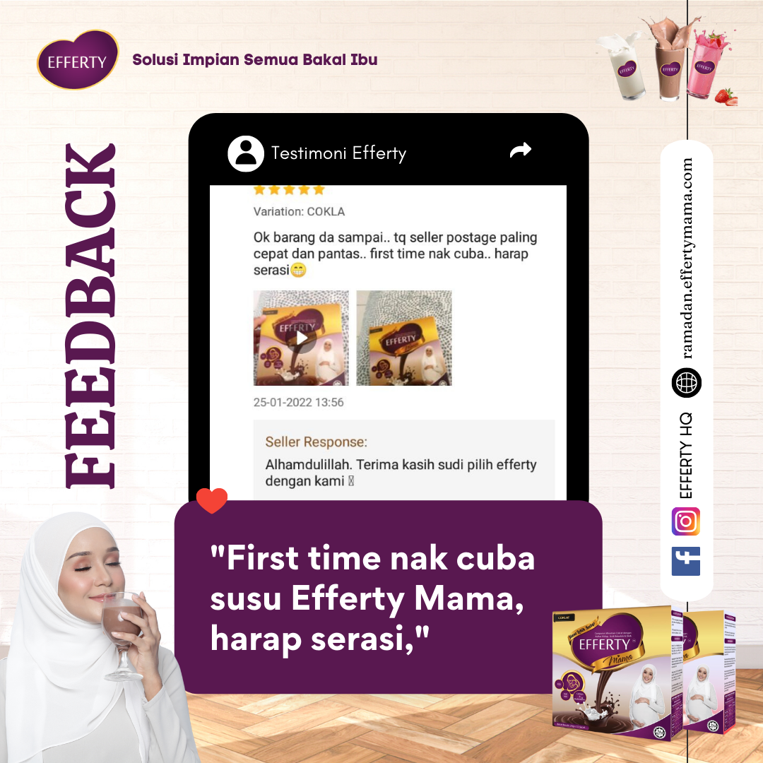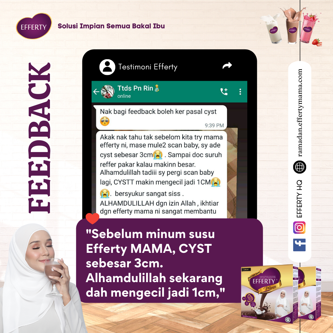 PENAFIAN: Pengambilan Susu Subur Efferty mungkin menunjukkan kesan dan tempoh yang berbeza mengikut keserasian individu tersebut.